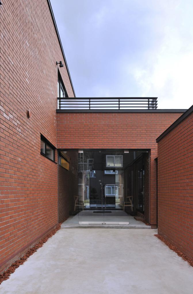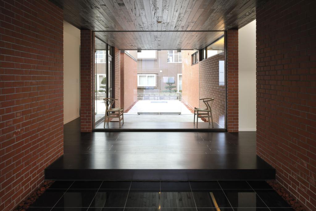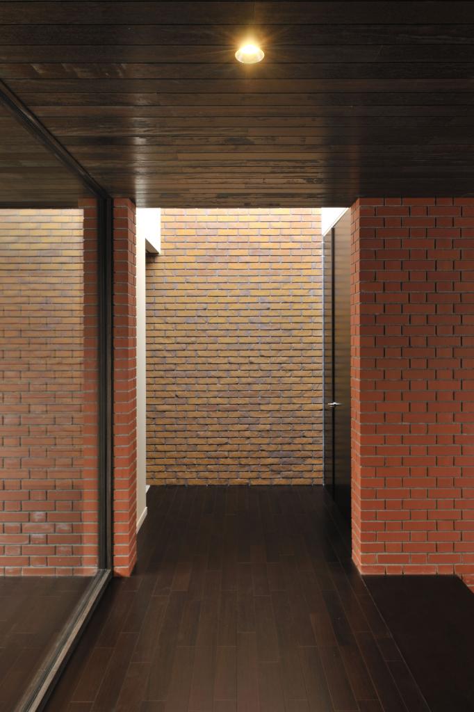 その煉瓦を用いたこの住宅は街並みに馴染むよう平屋を基軸に構成された.