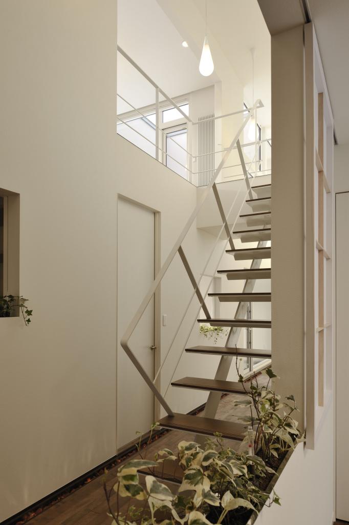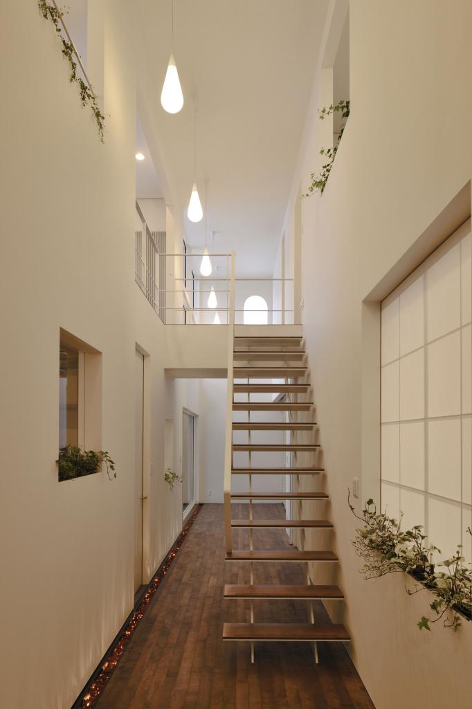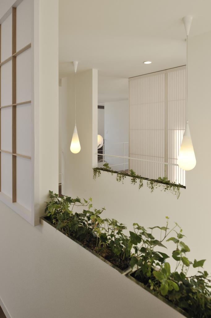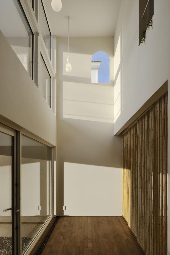 また,各所に設けられた中間領域として挿入された外部がそれぞれに異なる光や風を住宅内へと導いてくれる.
