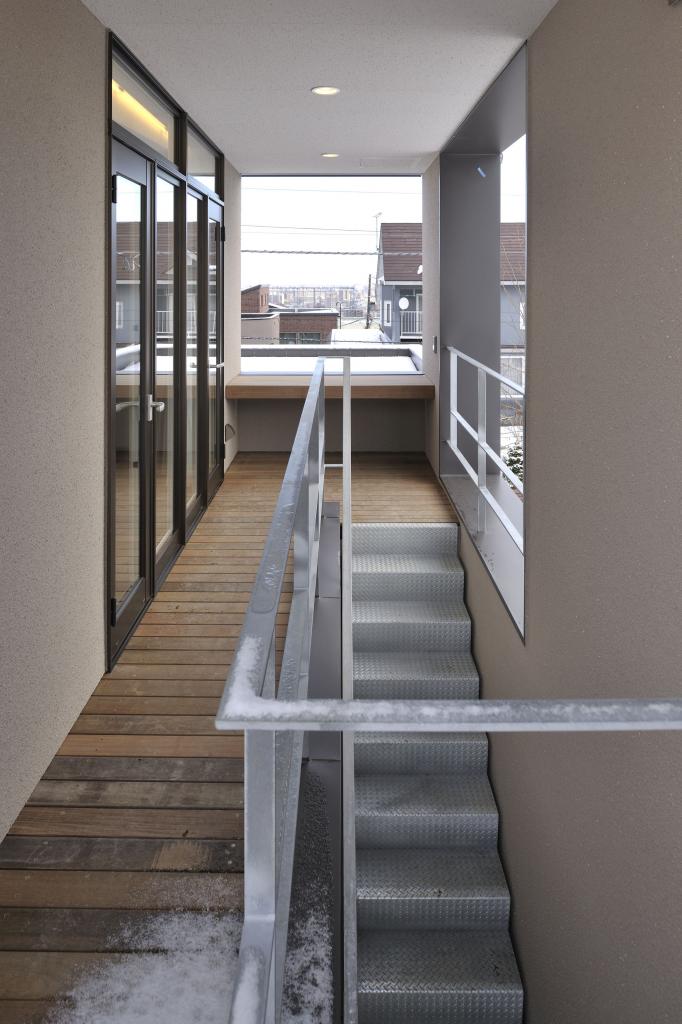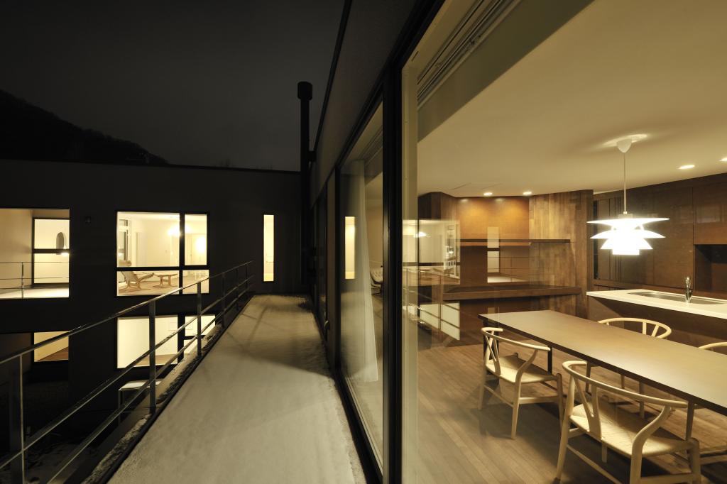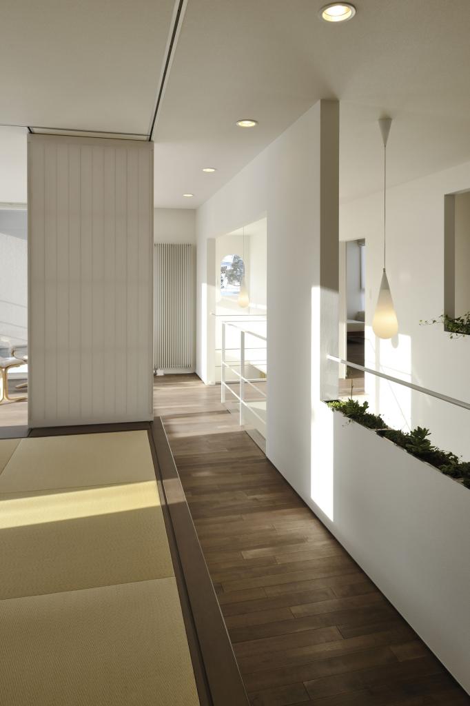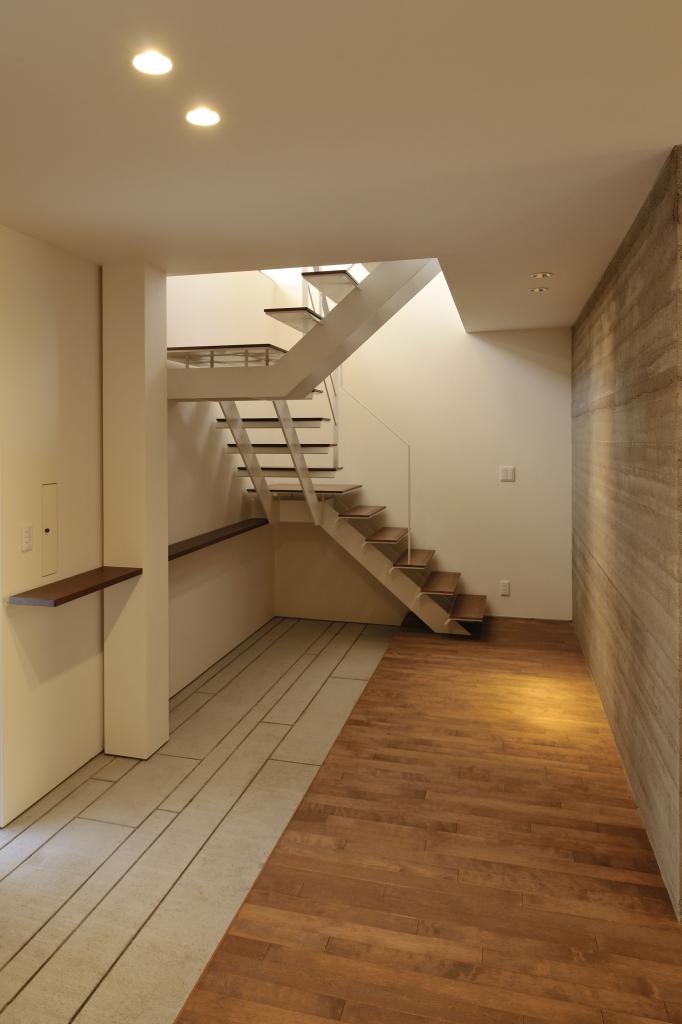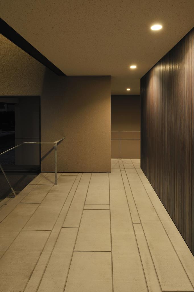 また,各所に設けられた中間領域として挿入された外部がそれぞれに異なる光や風を住宅内へと導いてくれる.