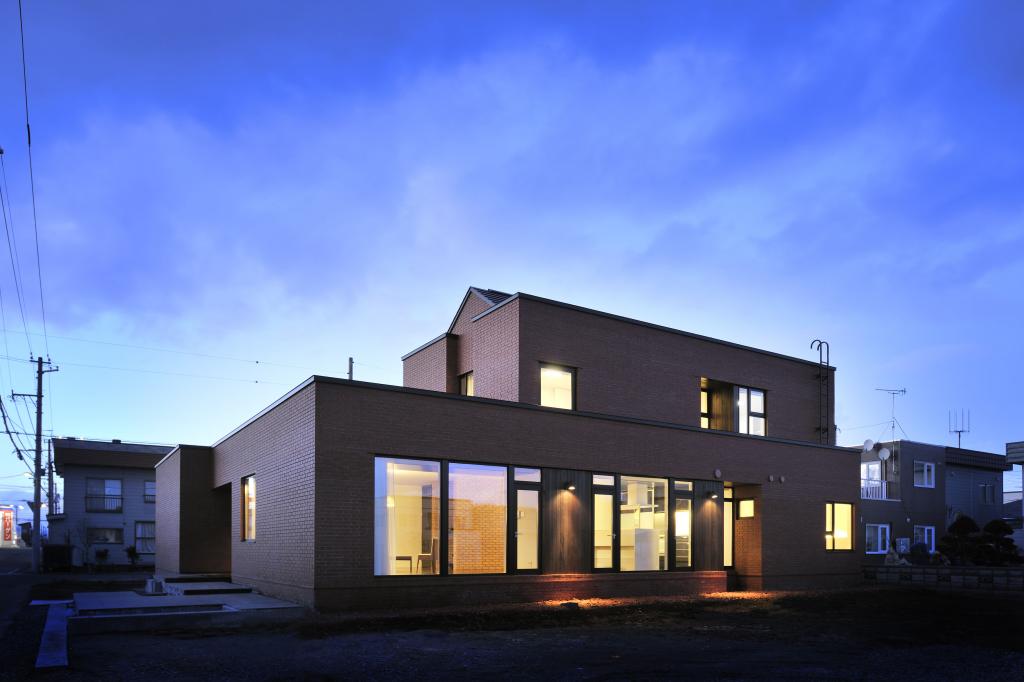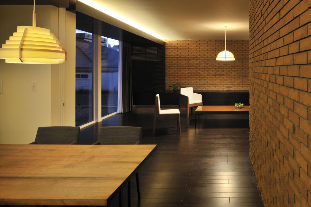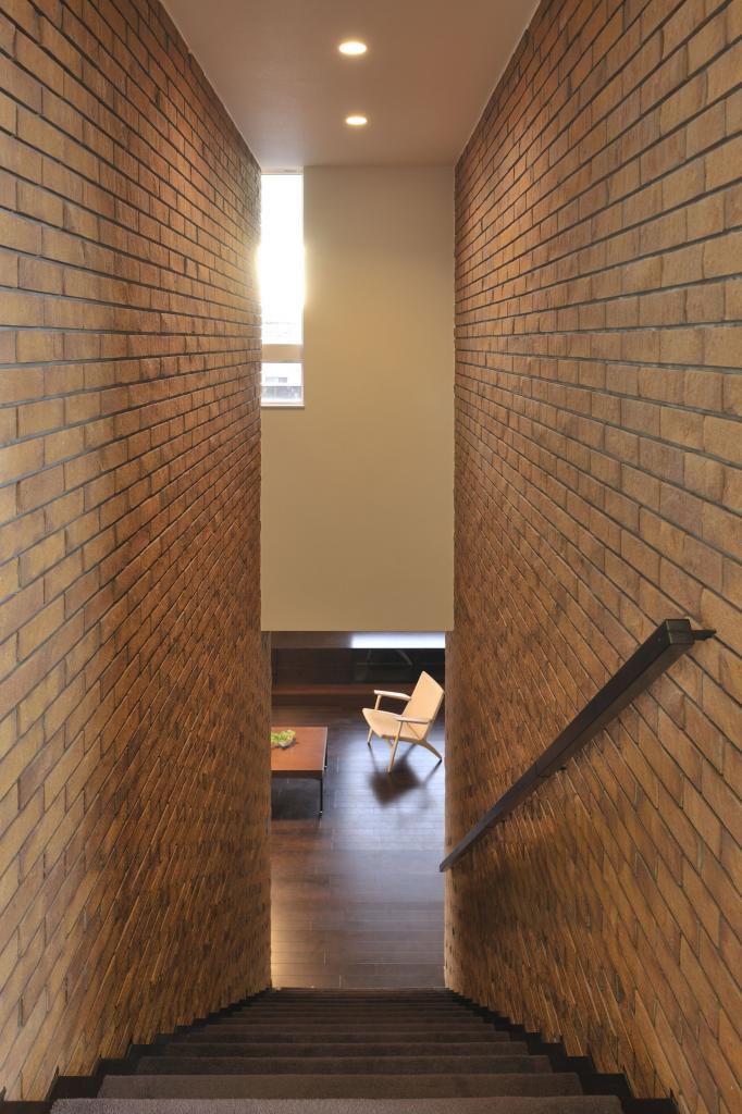 その煉瓦を用いたこの住宅は街並みに馴染むよう平屋を基軸に構成された.