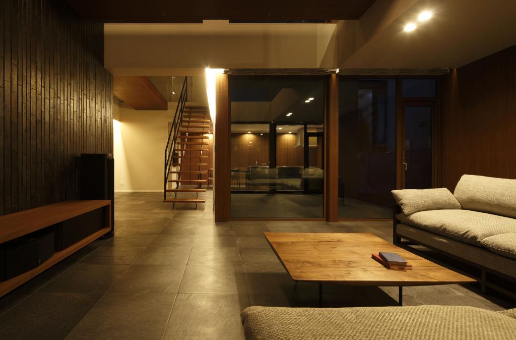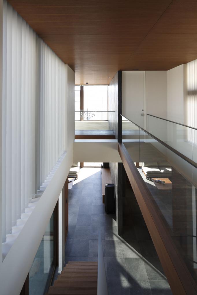 4つに層化され,機能が与えられた敷地レイヤーに沿って,必要とされる住宅のエレメントを丁寧に配してゆくと,そこにはむやみに長く非効率な動線と,縦横無方向に長く流れる視線が生まれる.