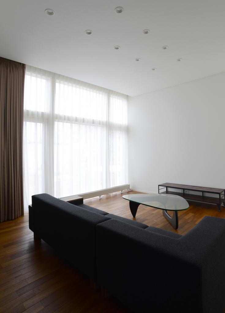 この計画は,若いご夫婦のための住宅の計画であるが,一般的な土地よりも外部との関係性が強く,設計密度として住宅の表情に関するスタディも重要になる計画となる.そこで採光の望める方位に対し安易に開かないことを考え,住宅に強い2面性を持たせ,アプローチからソファに座るまでのシークエンスにおいても,メリハリがつくようなプログラム配置とする.「来客者へのおもてなし」と「LDKの開放感」が施主からの要望の柱となり,シークエンスの極端な変化やリビングのボリューム感等は要望に対する解として成立していると考える.今回の住まいがゴルダ(カスク)となり,ここで住まうご夫妻が良質なスコッチのように時間とともに味わいを増し,成熟した素敵な大人となる時間を過ごせるよう考えました.