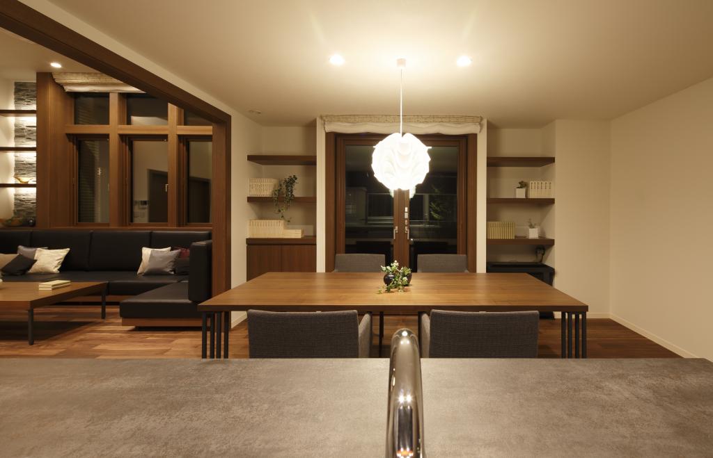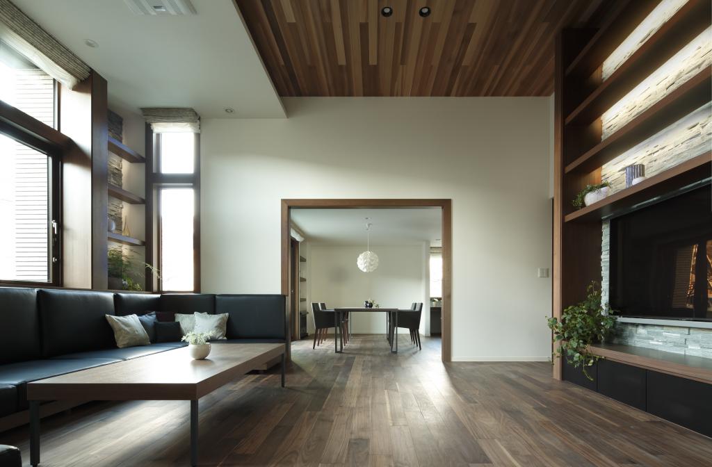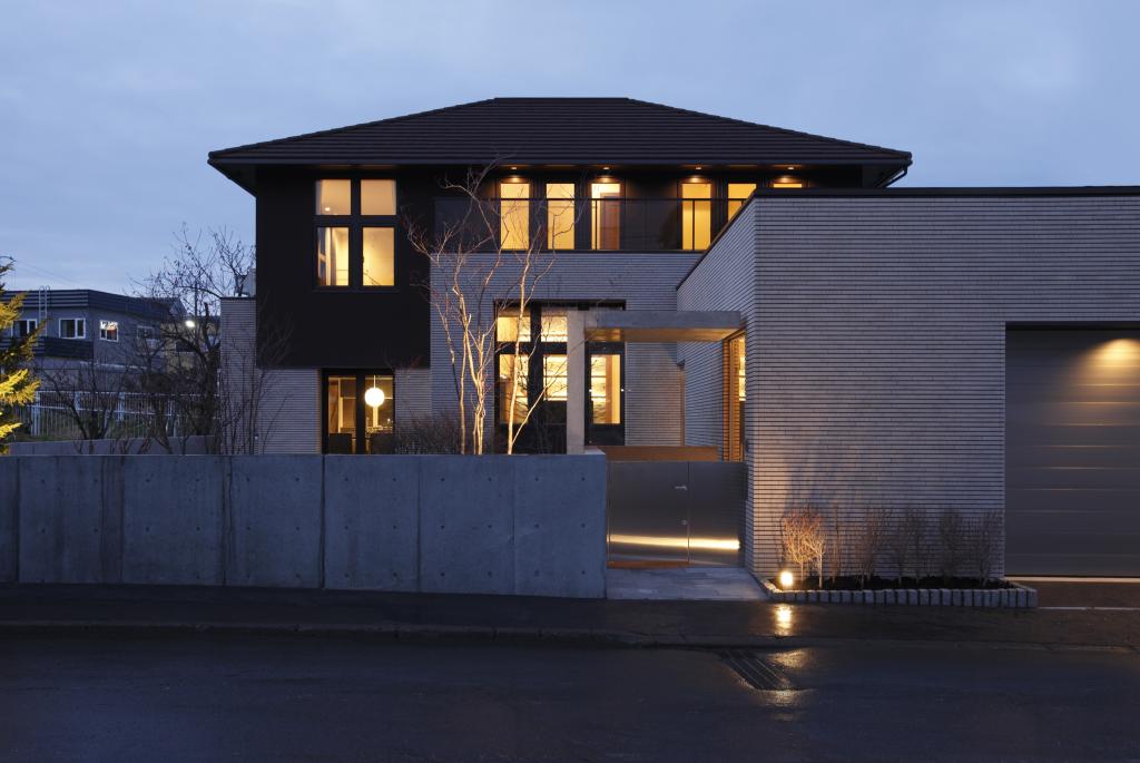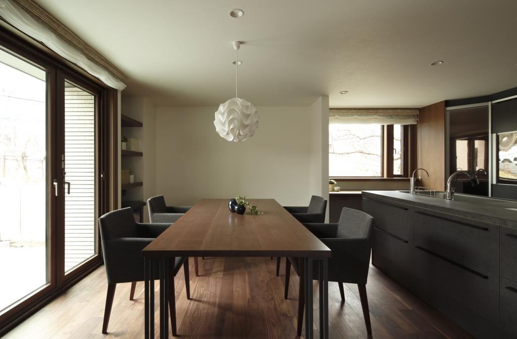 一年の三分の一ほどを船上で過ごされるご夫妻の国際感覚と手稲山をデザインのソースとし,クラシカルなコードと山中に存在する色彩のみで全体を構成した.