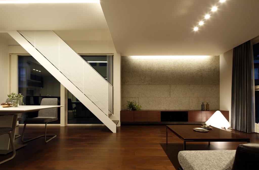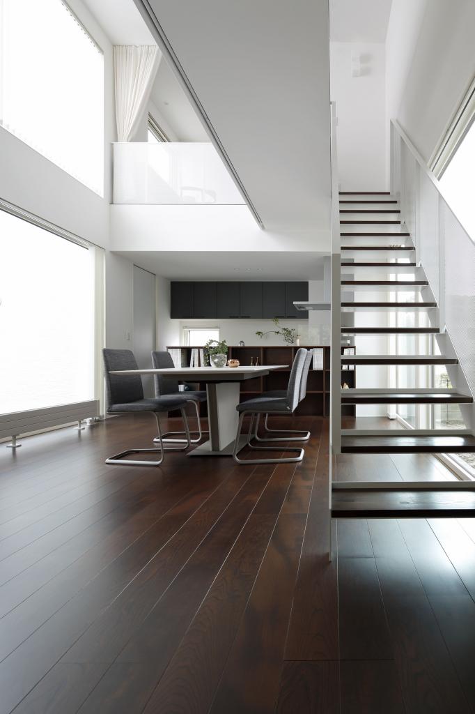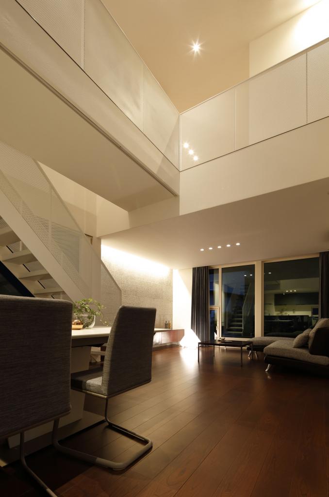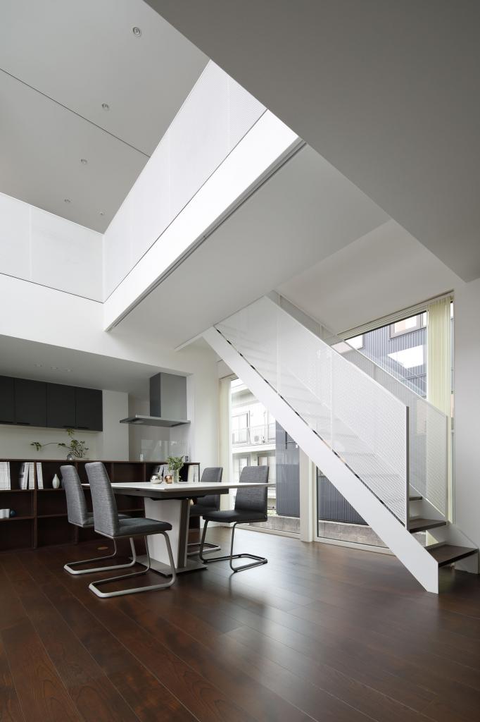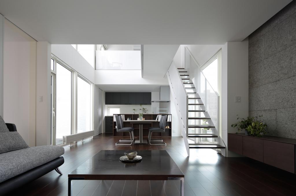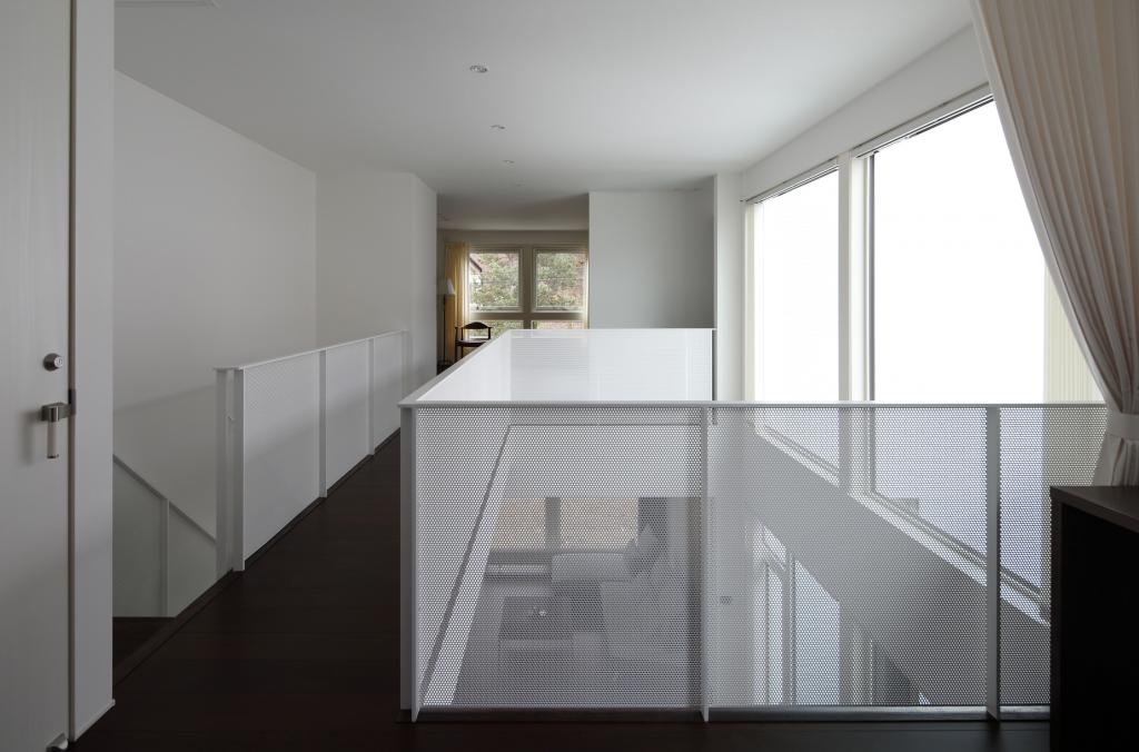 この住宅は二方向に大きな開口を持つ.一つは四季を楽しむべく穿たれた開口,もう一つは光を導く開口である.緑景には素直に開き,空景には中庭と吹抜を介して開いた.縦にも横にも閉塞的にならぬよう視線の抜けを確保し,その実現の為に空間を部屋として分節することをやめた.緑崖の庭,中庭,住宅という庭.中も外も庭と捉えたこの住宅は滞留する場所々々で見える景色も居心地も異なり,まさに回遊式庭園のような魅力を持ち合わせているのである.