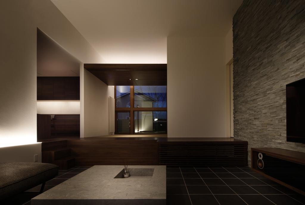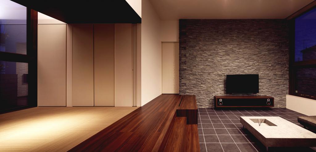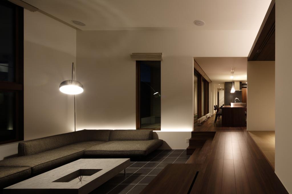 日常の疲れを,住まいの中で少しでも和らげる事が出来るよう,外部と内部の両面で,多様なポケットを計画した.平面的な考察だけでなく,断面的な面でも多くのバリエーションがうまれるような工夫が必要であり,その一部としてリビングの床を50センチ程下げることで,ダイニングとの視線がセパレートされ,GLとの距離は近くなり,重心が下がることで,強い落ち着きを感じてもらえればと考えた