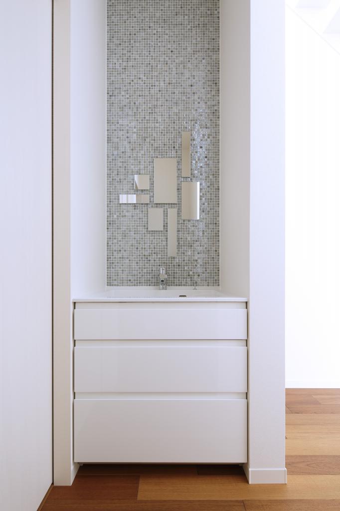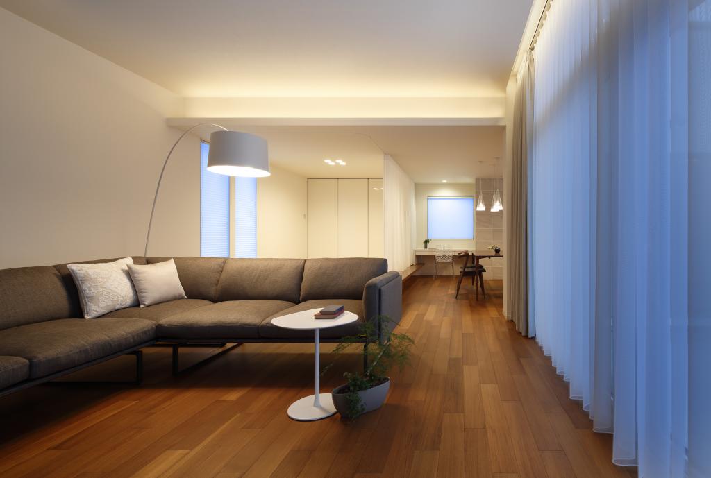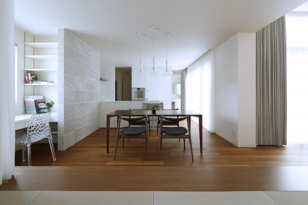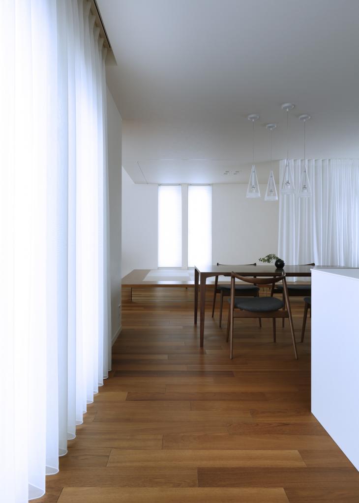 チークの床に憂鬱になりながら打合せを繰り返し,結果,クールでありながらもどこかフェミニンな印象の,クライアントの溢れる想いの詰まった住宅が誕生した.