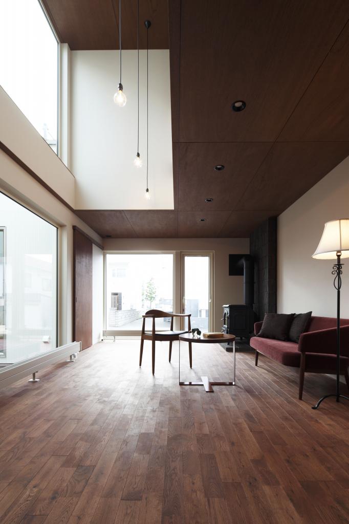 北海道の住宅を象徴していた住宅供給公社による住まいの記憶に寄り添いながら、現代における北海道のスタンダードを模索して生まれた住宅である。記憶はどこに宿るのか、それは時に素材の質感であったり匂いであったり、あるいは家具の場合もあるだろう。それをここでは薪ストーブや素材に見出そうとしている。現代の生活に求められる環境性能は高めながら、薪ストーブを中心に組立てたおおらかな空間は、北海道らしい素朴さと暖かみを併せ持った空間となっている。地域性は、今後益々重要なテーマになるだろうが、こうした一人一人の記憶の継承に向けた取り組みは、将来に向けてより大きな価値を持つだろう。