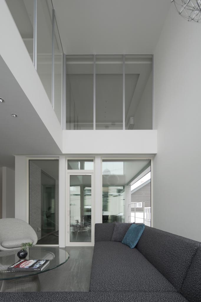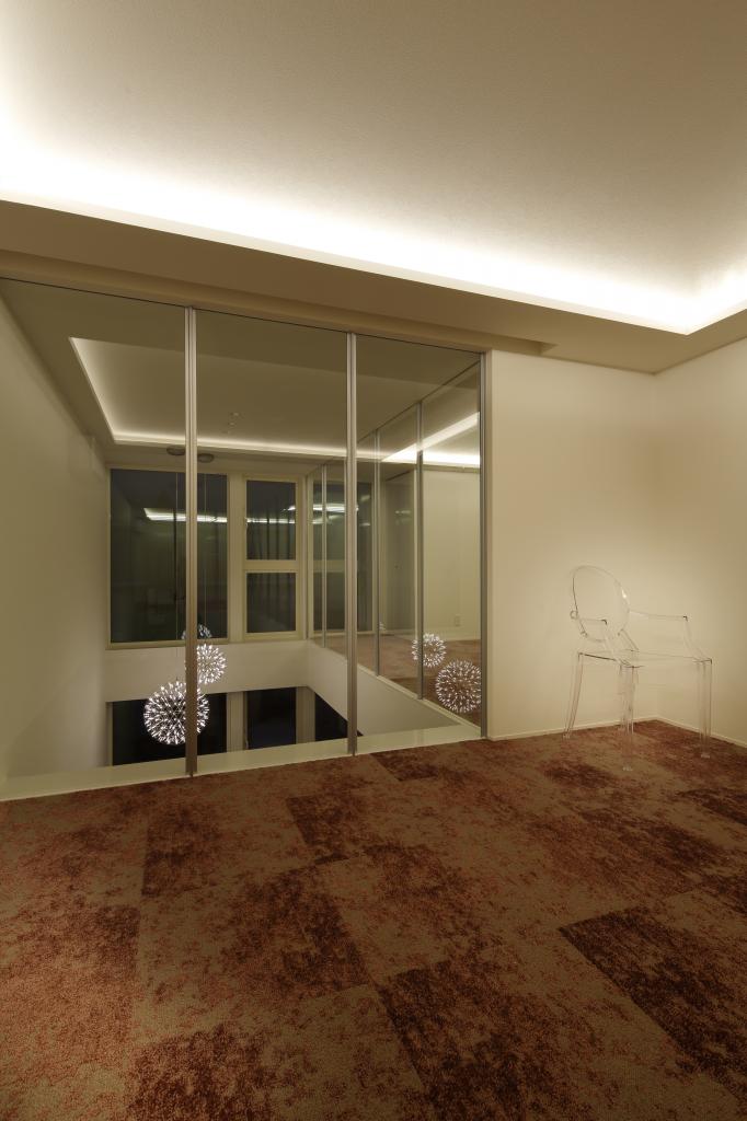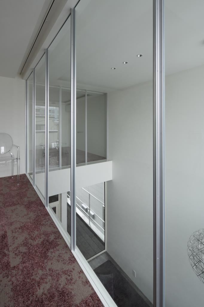 そこでまずは平面的・断面的に機能のボリュームを隙間なくならべ重ね,そのマスに透明化させた矩形のボリュームとしての吹抜と半屋外のテラスを,必要機能を分断するかのように挿入した.
